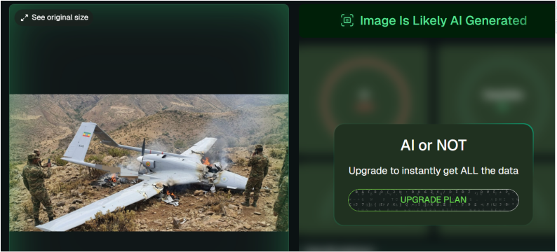 Based on our investigation and analysis, the image claiming to show an Ethiopian drone shot down by Eritrea near the shared border is AI-generated. Therefore, MFC rates this claim as False.